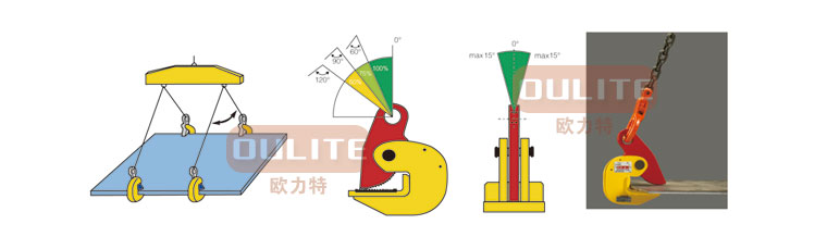 .額定載荷是指吊鉗成對使用、吊點夾具為60度時允許起吊的最大重量,吊裝作業中兩只或4只配套成組使用